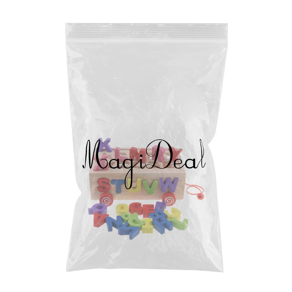 - Beautifully constructed wooden toy with brightly colored Alphabet Letter blocks