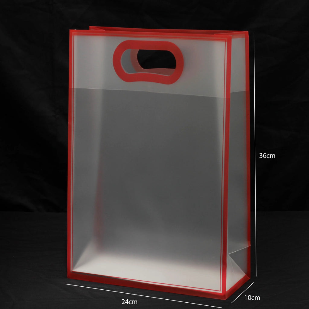 Made from high-quality clear PVC material, this durable and reusable gift bag allows full product visibility while giving a modern and elegant look. The sturdy built-in handle ensures comfortable carrying, making it ideal for retail display and event gifting.